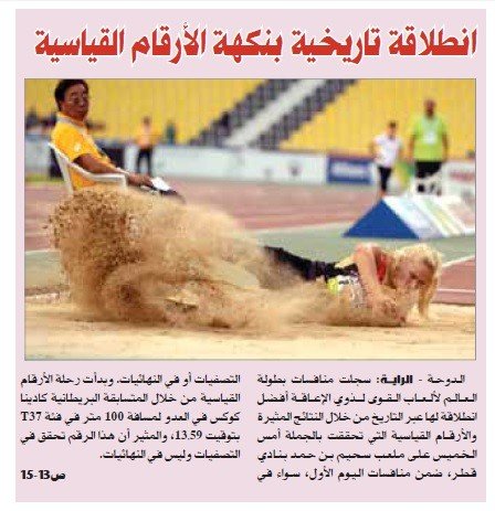 ثاجبة الكبيسي تخطف فضية شلل دماغي رمي القرص 11/03/2015