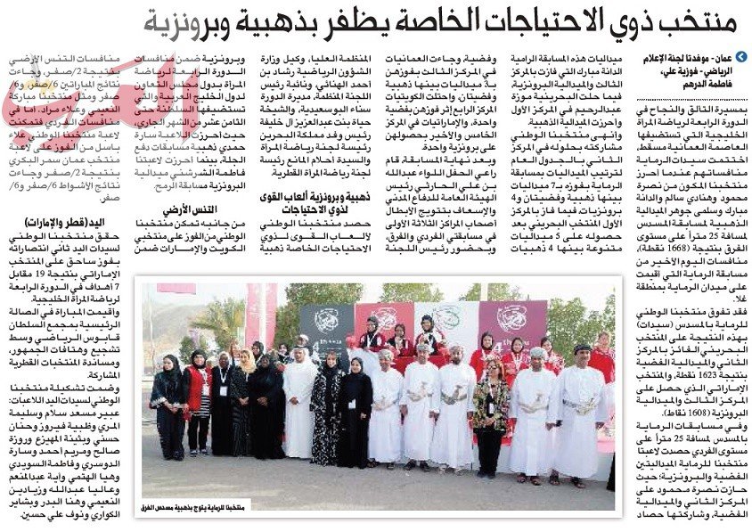 منتخب ذوي الاحتياجات الخاصة يظفر بذهبية و برونزية 11/03/2015