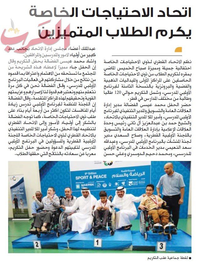الاتحاد القطري لذوي الاحتياجات الخاصة بحتفي بأبطاله و يكرم السحوتي و الجعيدي 219